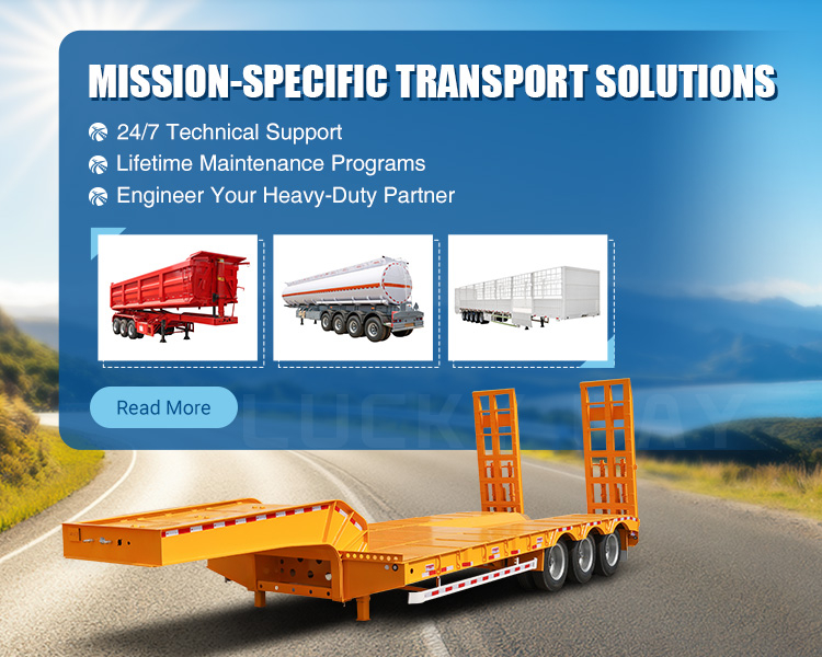 Low Bed Semi-Trailer a specialized trailer for heavy-duty equipment, oversized and special cargo, commonly used for long-distance transportation.